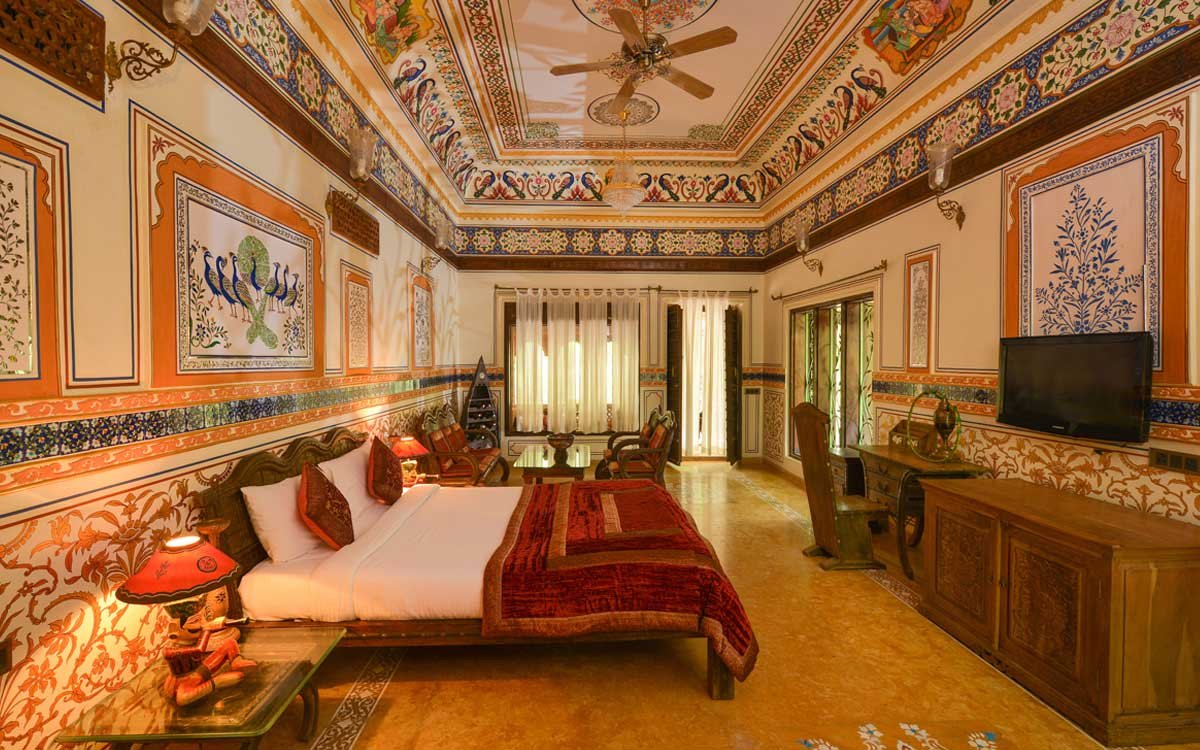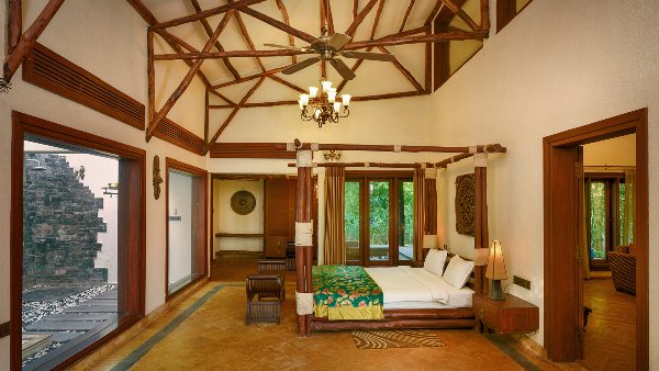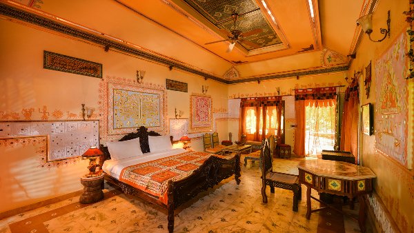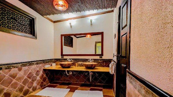 With only two exclusive boutique suites, you and your loved ones are assured of the utmost privacy and indulgence. Each suite offers a spacious living room, a private dressing area, a cozy seating corner, and a wide veranda overlooking serene natural views. The luxurious bathroom features a traditional hammam for ultimate relaxation. Step outside to unwind at your personal machan or gather around the bonfire space under the stars. Thoughtfully complemented with modern amenities, these suites promise an enchanting and truly memorable stay.