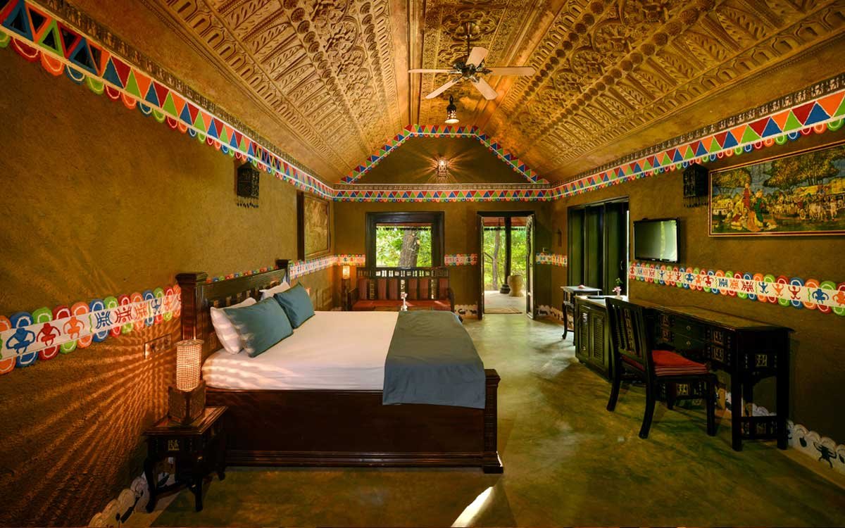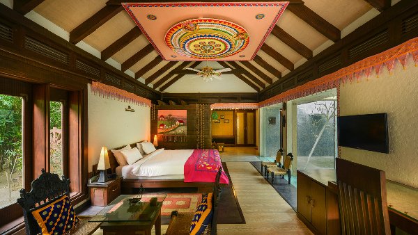 The 8 Theme based cottages at Syna beautifully capture the cultural tapestry of India, reflecting the heritage of Chhattisgarh, Odisha, Gujarat, Rajasthan, Assam, Tripura, Karnataka, and Kerala. Adorned with rural artworks, traditional statues, and touches of tribal culture, each cottage offers an authentic yet luxurious stay. Thoughtfully designed, they feature air-conditioning, a private dressing room, a spacious veranda overlooking the forest, and a separate seating area for your comfort.