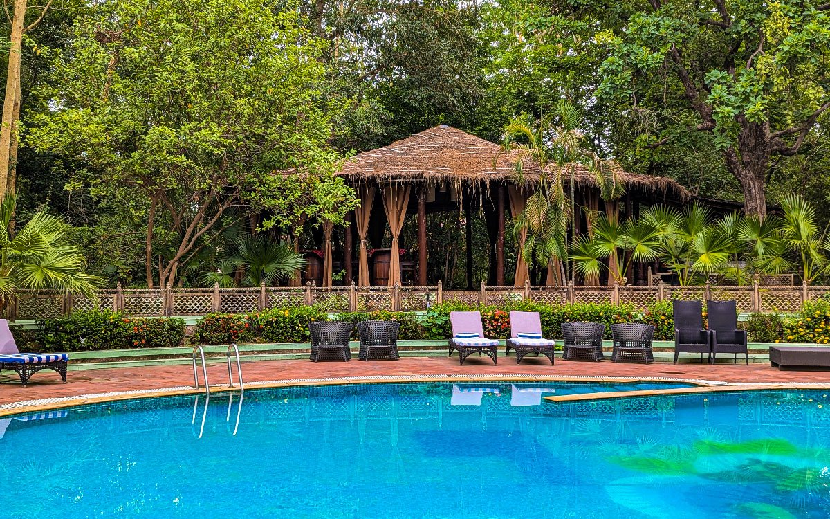 Unwind after your jungle adventures at Syna Tiger Resort’s grand swimming pool — the biggest in Bandhavgarh. Surrounded by lush greenery, the pool offers a serene escape where you can soak up the sun, take a refreshing dip, or simply relax by the deck. Whether it’s a morning swim, a leisurely afternoon, or an evening by the poolside, this oasis of calm promises rejuvenation and indulgence in equal measure.