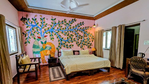 A cherished gem in Bandhavgarh, Syna Tiger Resort is just 200 metres from the well-known Bandhavgarh National Park, making it a must-visit for all wildlife lovers. This resort in Bandhavgarh, which won the Travellers' Choice Award from Tripadvisor in 2025, offers you pure jungle luxury in a natural setting. The resort boasts 20 beautiful cottages scattered across a natural forested estate of 85 acres, making your dreams of enjoying a relaxing escape in nature come true. Allow the restaurant to pamper your taste buds with carefully prepared and lip-smacking meals throughout your stay and enjoy thrilling safaris in Bandhavgarh and try your luck spotting some tigers. Feel the serenity settle in as you embark on nature hikes in the area, attend a wildlife screening to learn everything there is to know about Bandhavgarh's animals, or have some memorable evenings by the bonfire...the choices are aplenty. Get, set, roar!