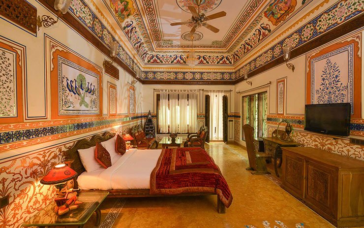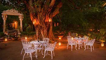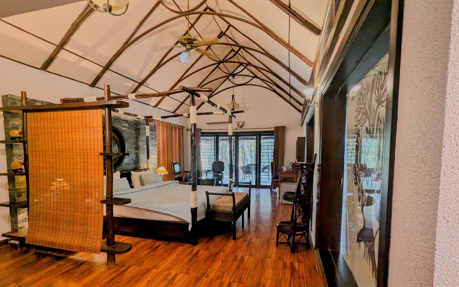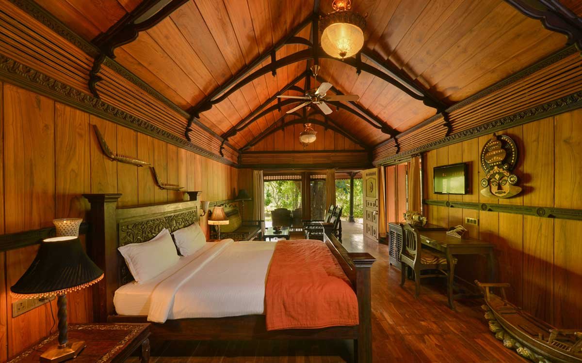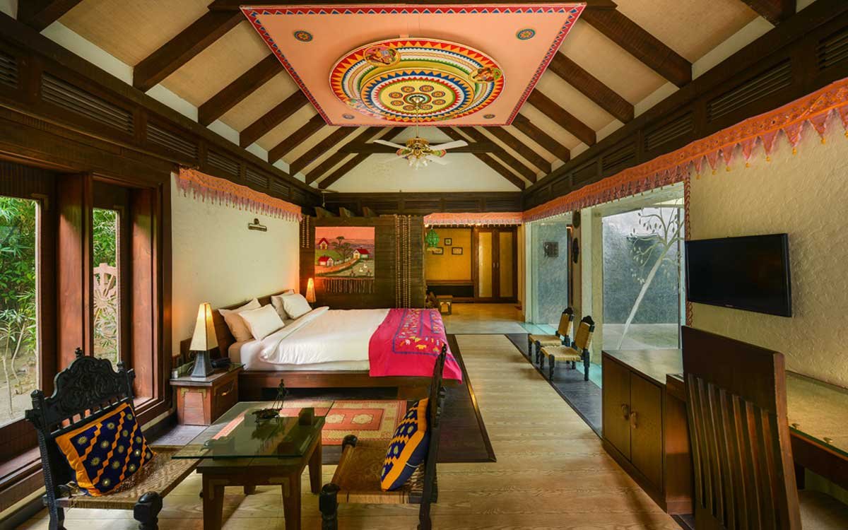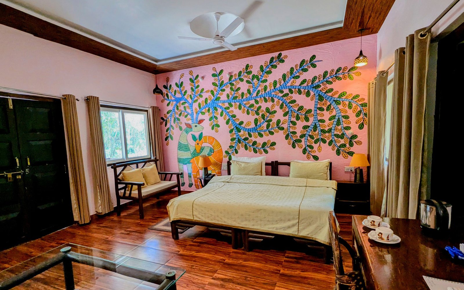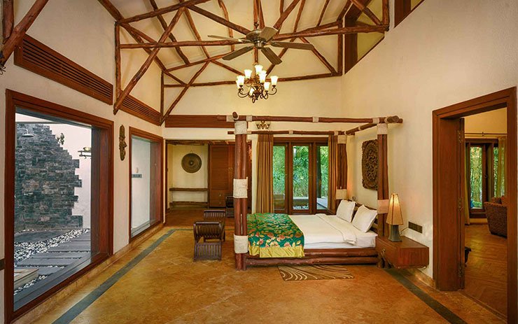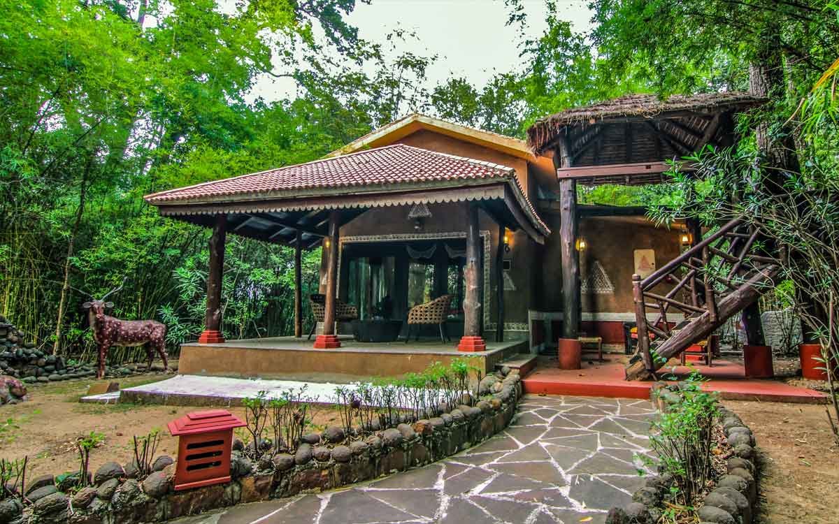 The boutique cottages at Syna cleverly reflect the cultural history of India and the states of Chhattisgarh, Odisha, Gujarat, Rajasthan, Assam, Tripura, Karnataka and Kerala. Expect rural artworks, statues and hints of tribal culture. Each cottage features air conditioning, a dressing room, a large veranda with forest views and a separate seating area.